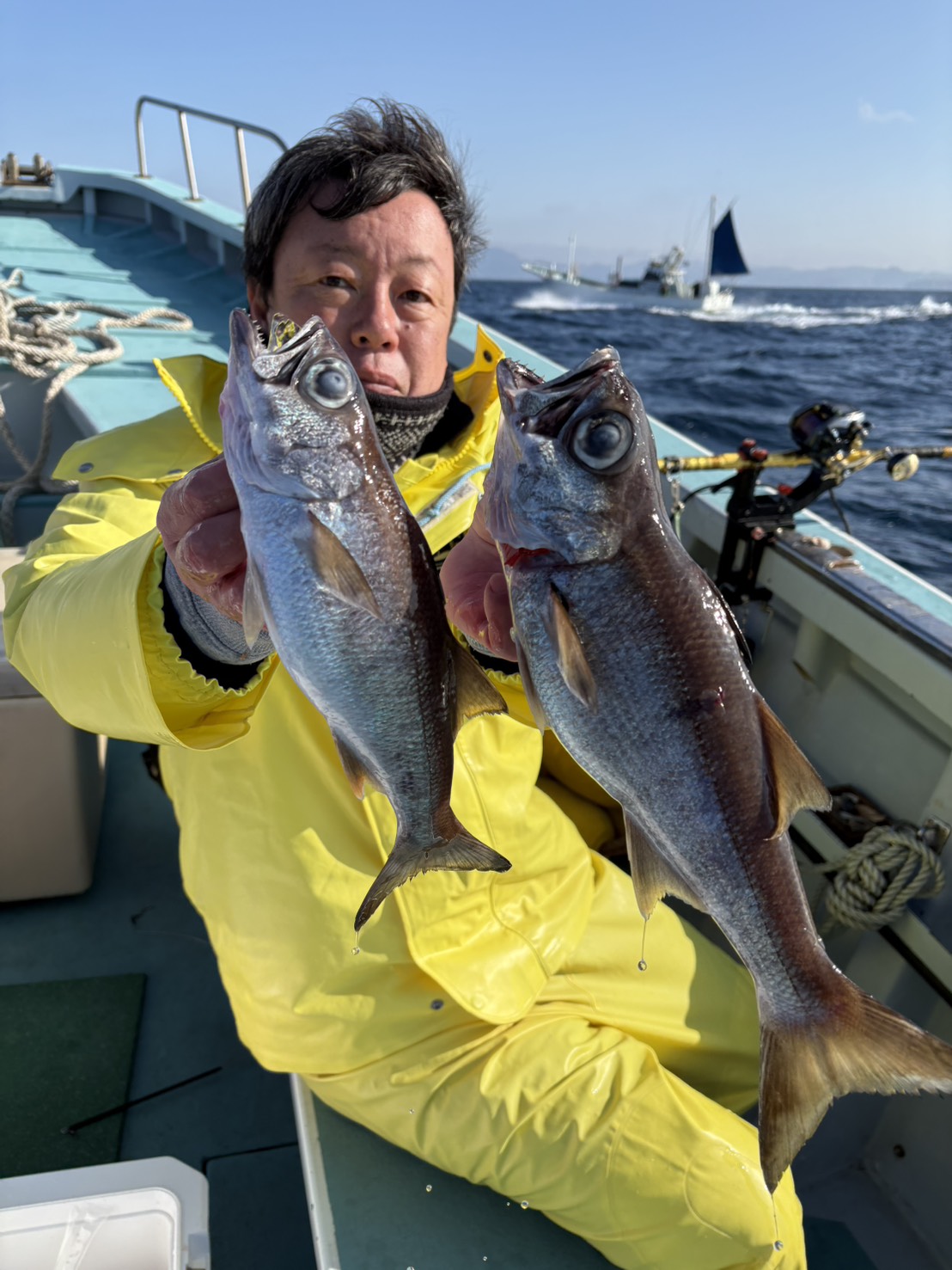 本日は黒ムツに出船朝一から良型の黒ムツが釣れ良かったです。皆さん頑張ってくれてありがとうございました。又宜しくお願いします。