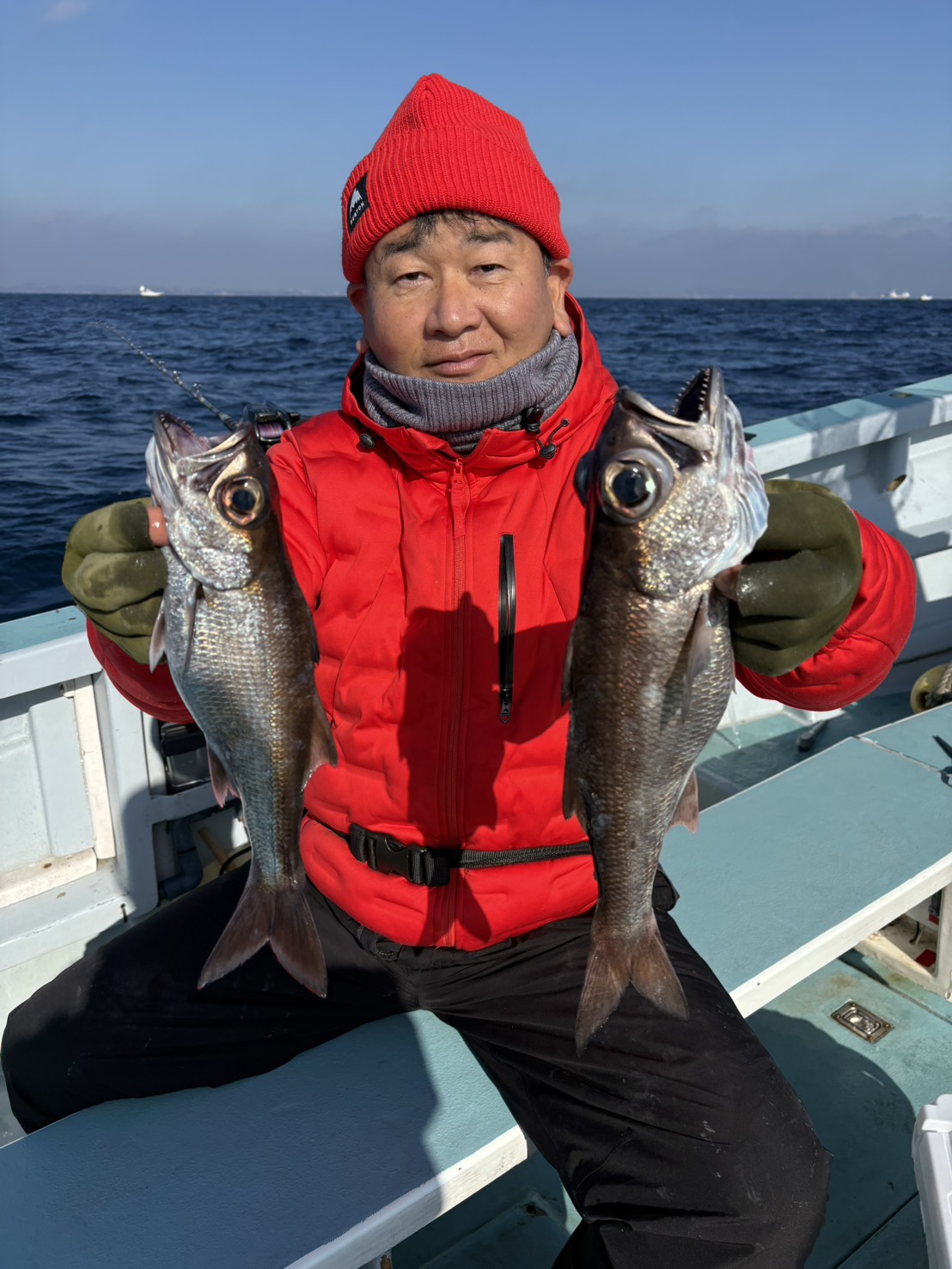 黒ムツ好調全員GETです シャクリ五目に真鯛、石鯛、黒鯛、イナダ、ショゴ、イサキ、メジナ交じる。みなさん今日はどうもありがとうございました。